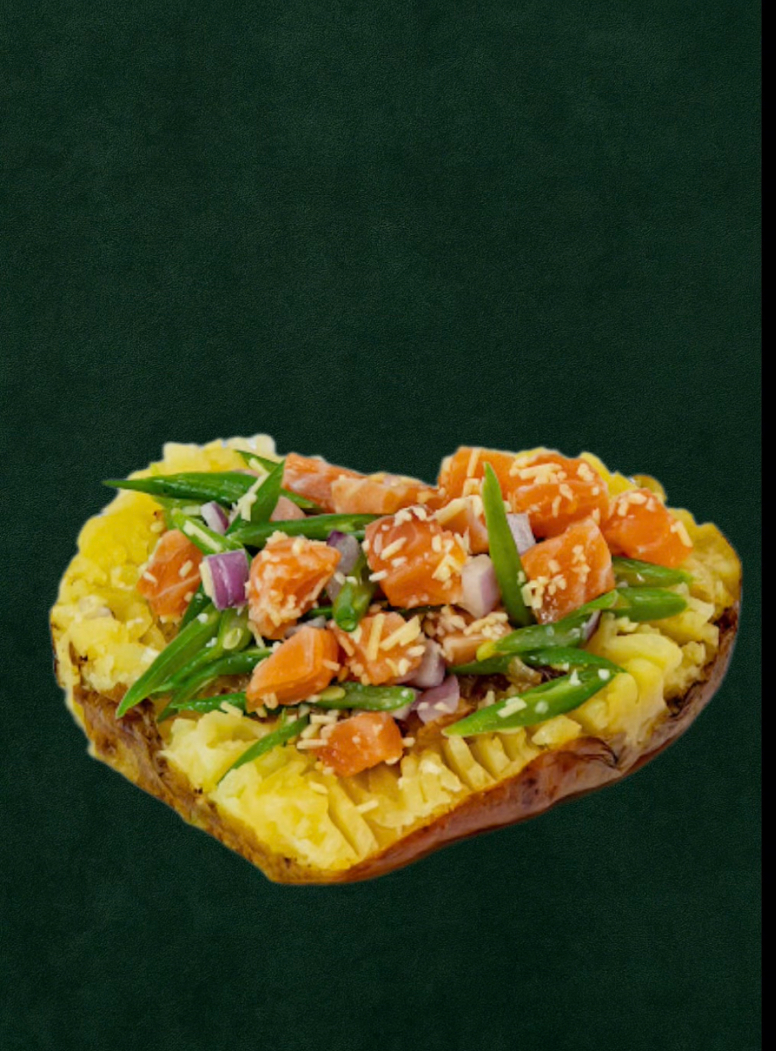 Печёный картофель с лососем Гравлакс с хрустящими бобами